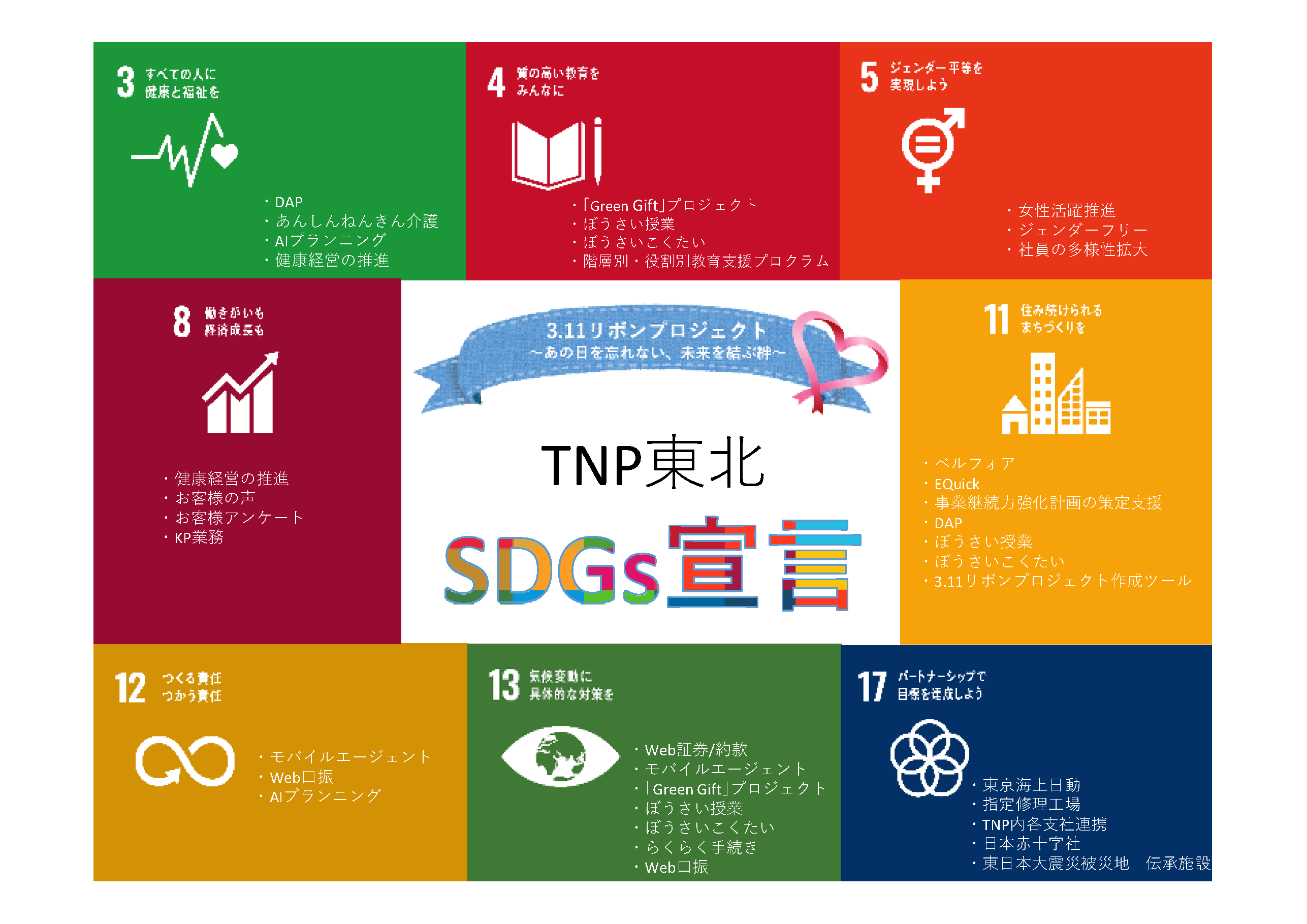 2021年10月にSDGs目標達成へ向け、オリジナル「SDGs宣言ポスター」を作成。その後、社内でSDGs勉強会を開催し、勉強会後には全支社でSDGsについての意見交換会を実施して理解を深めました。