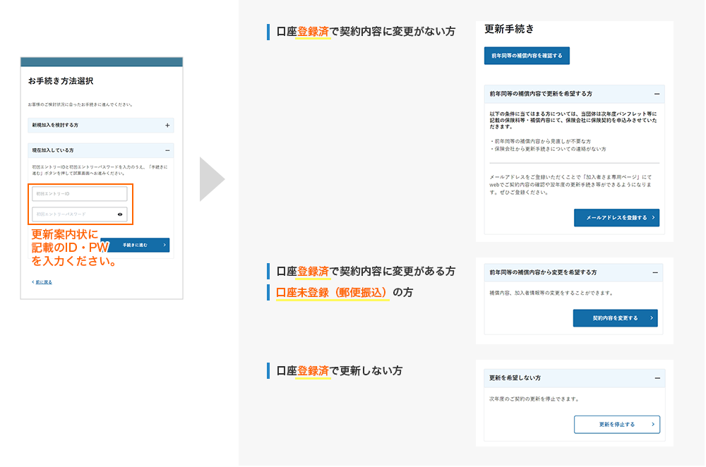 | 更新・変更の注意点 | 本制度はメールアドレス登録・口座登録があれば、自動更新となります。補償内容・ご加入者情報に変更がない場合は、お手続き不要です。